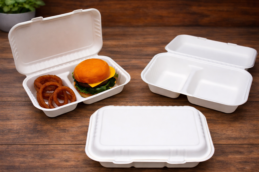 Durable containers made from bagasse to handle hot and greasy foods with ease. Suitable for delivery, storage, and reheating without losing structure. A superior eco-friendly solution for disposable food packaging.