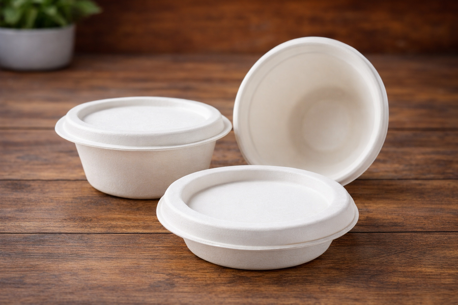 Leak-resistant bagasse bowls suitable for soups, curries, salads, and sides. Heat-stable and secure for delivery and dine-in use. A responsible alternative to plastic while maintaining excellent functionality.