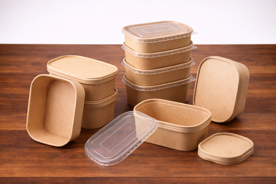 Eco-friendly kraft containers with strong structural integrity for hot and cold foods. Designed to maintain freshness while resisting leaks, oil, and moisture. A sustainable packaging choice for restaurants, caterers, and delivery services.