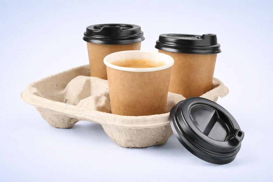 Durable paper-based cup holders that securely support multiple beverage cups during transport. Ideal for takeaway and delivery operations with load stability.