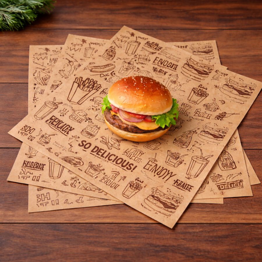 Our burger wrapping paper is crafted with superior grease resistance to keep meals fresh and mess-free. Ideal for burgers, sandwiches, and fast-food packaging, it maintains product quality during handling and delivery. Lightweight, hygienic, and fully customizable for branding.